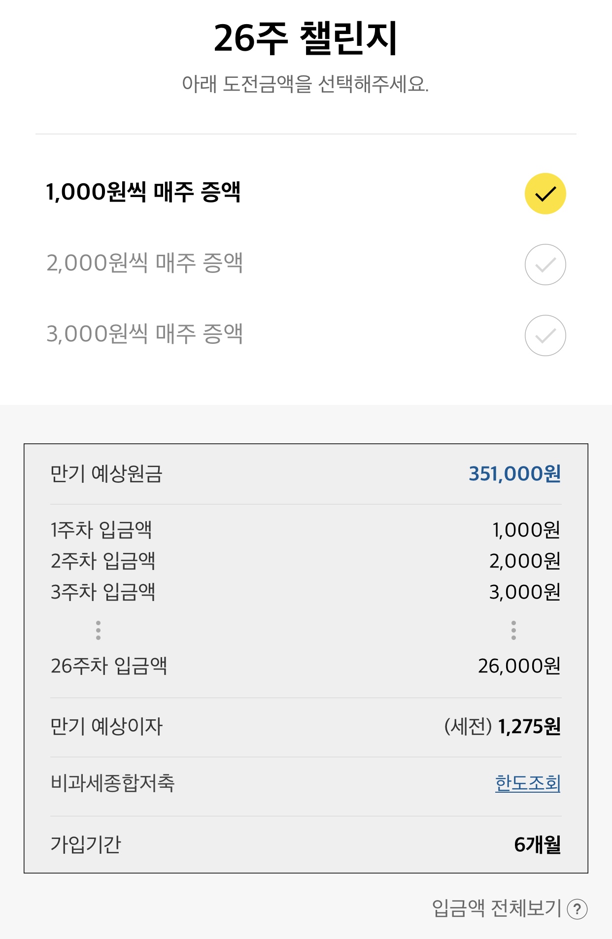 - 26주 뒤면 35만원 | 75만원 | 105만원 적금 완료