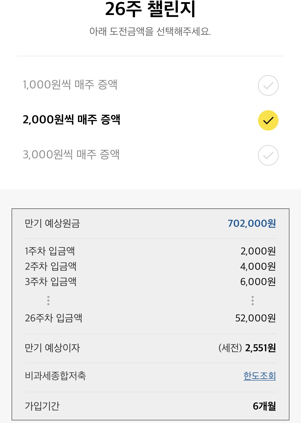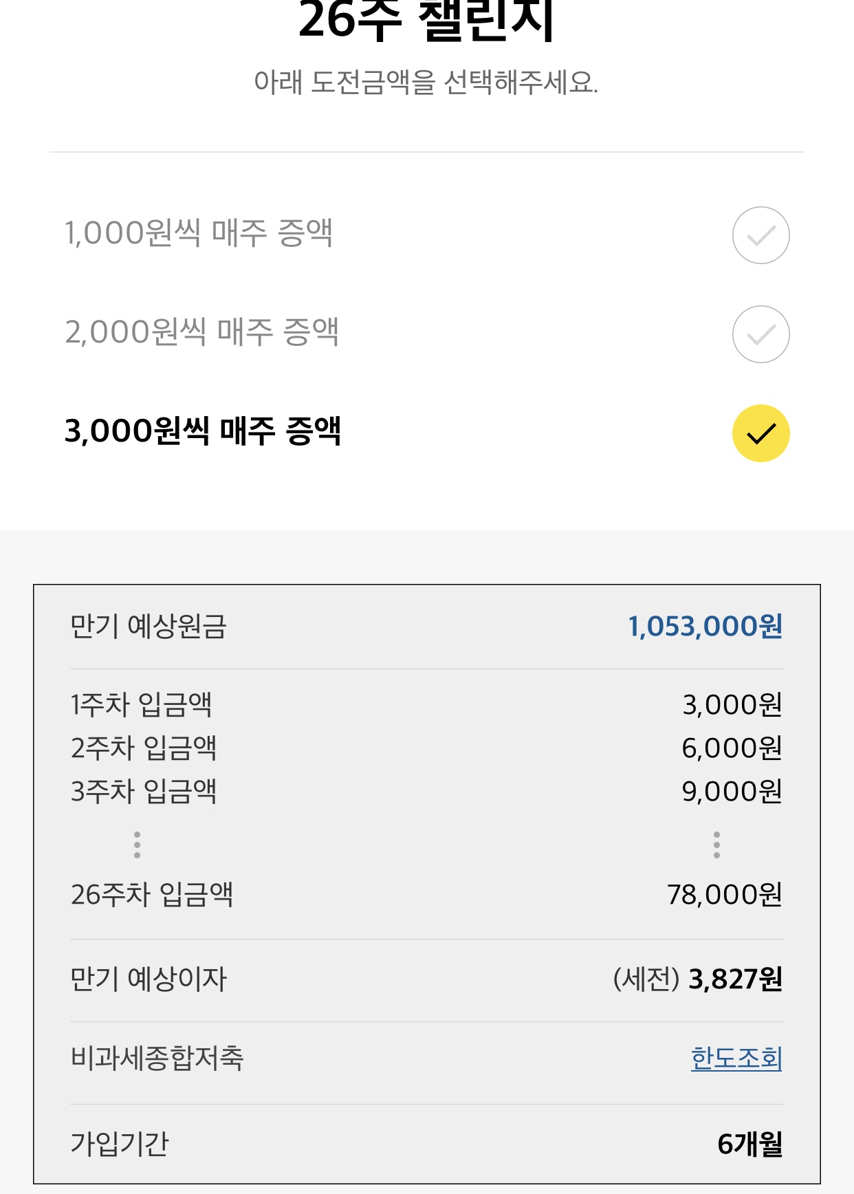 - 매주 1,000원 | 2,000원 | 3,000원 중 선택