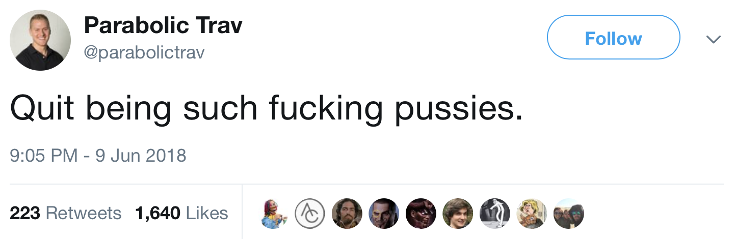 파라볼릭 트레브는 고작 작년 4월에 트위터 계정을 개설했고 4분기 이전까지는 듣보에 지나지 않았다.