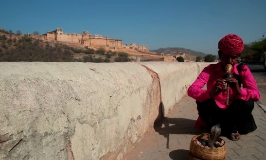 어느덧 다와가는 시티팰리스가 보여 열심히 가는 릭샤를 멈추고 사진을 찍는데 갑자기 제 앞에서 피리를 불며 코브라가 나오는 모습을 연출시키더라구요.