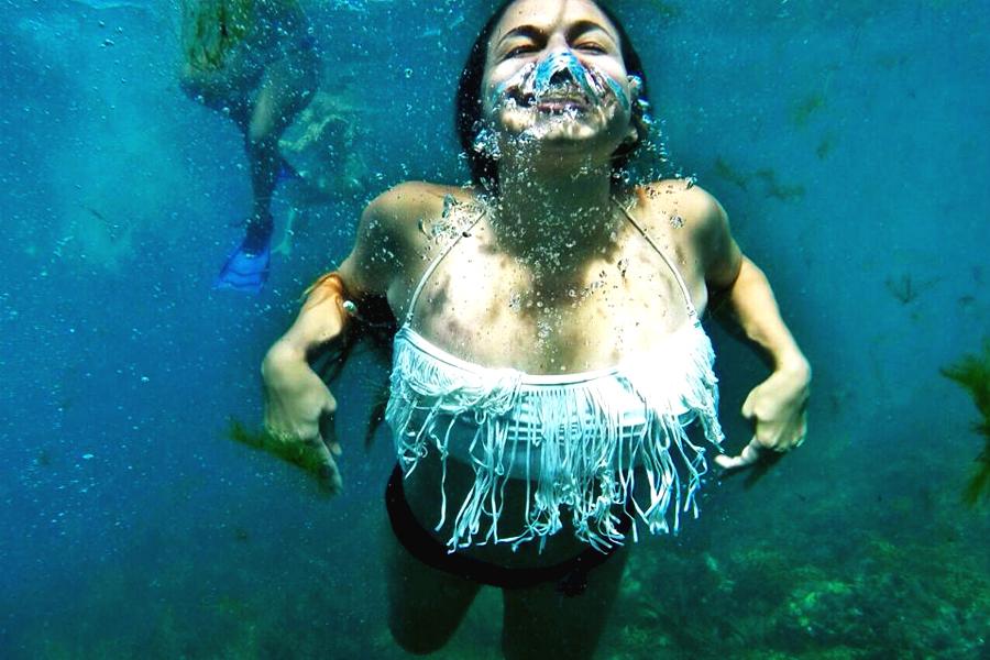 여기서 거기까지 수영을 하고 난 후에 우리는 사진을 찍을 시간이라고 결정했어요. 우리는 영화 아바타의 출구처럼 보였기 때문에 스노클 마스크를 쓴 사진을 원하지 않았어요. 그리고 너는 글래머가 먼저 가는 것을 이해할 것이에요. ㅎㅎㅎ우리는 마스크의 벗고 숨을 참고 사진을 찍기 위해 포즈를 취해요. 우리는 소금물을 많이 삼키지만, 저는 한 방울 한 방울 한 방울도 가치가 있다고 약속해요.