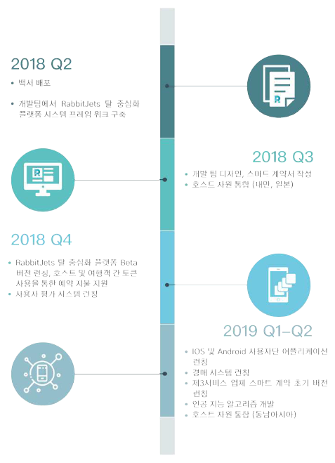 여행객이 숙박시설 이용 시 에너지 낭비가 많으며, 스마트 IoT 시스템의 기초 건설을 통해 RabbitJets은 에너지 낭비를 감소할 수 있는 시스템을 구축했습니다. 호스트는 숙박비와 에너지 사용 금액을 나눠 지불 요청할 수 있고, 여행객은 예약시 숙박 비용만 지불하고 에너지 사용비는 여행객이 퇴실한 후, 해당 사용 금액을 결제할 수 있습니다. - 신뢰 시스템