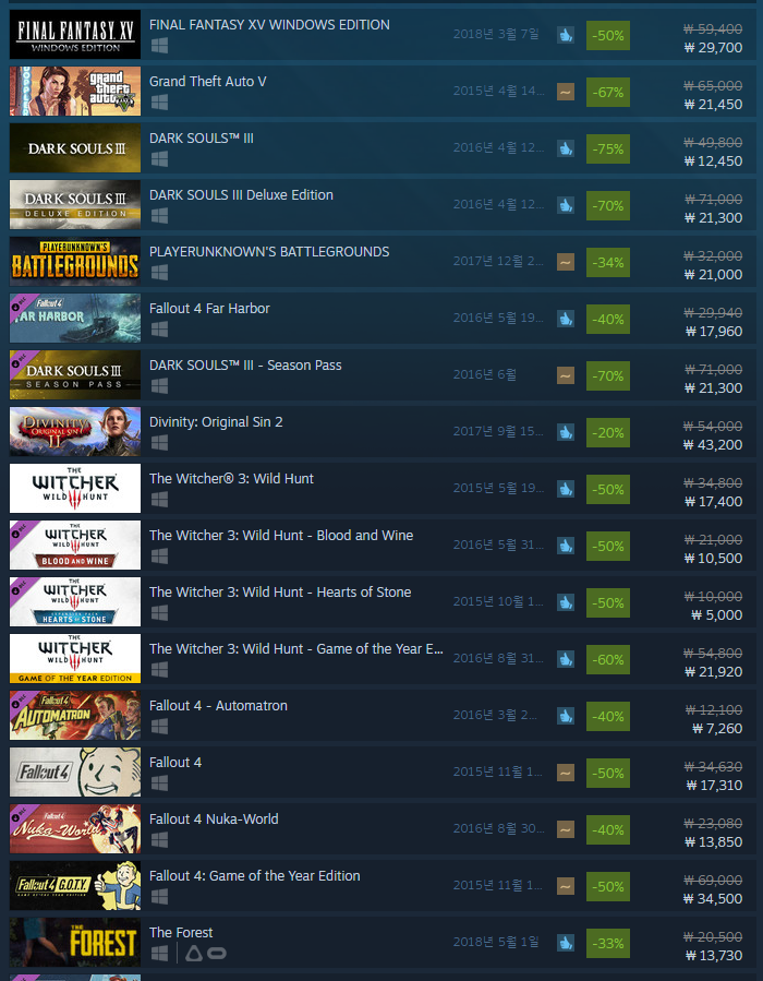 할인폭이 큰 유명한 게임으로는 아래와 같은 것들이 있습니다.