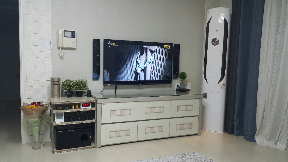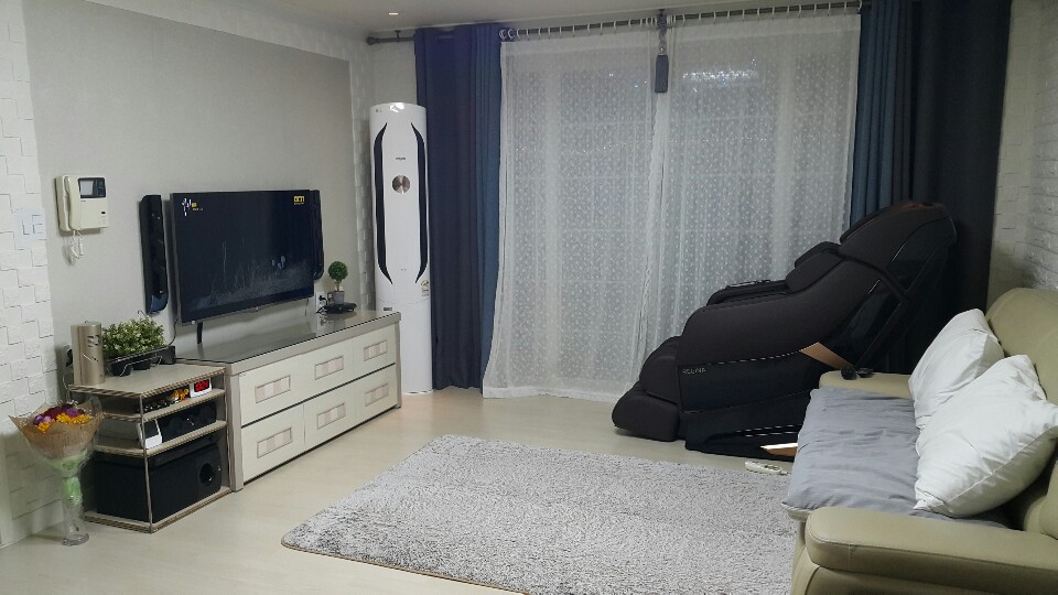 설치를 끝내고 당당하게 거실한쪽을 차지하고 있는 에어컨을