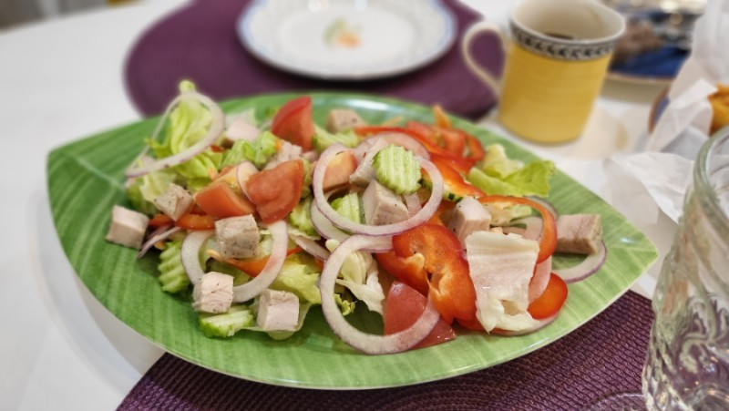 샐러드 하나 후딱 만들어오고, 우유빙수, 커피까지 주문하니 은근 푸짐하네.