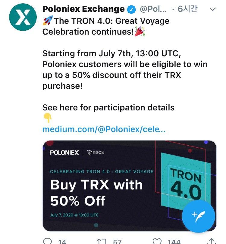 폴로닉스 거래소가 TRX 50% 할인판매 이벤트를 합니다.