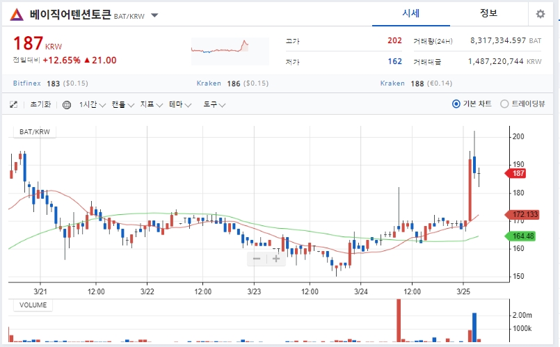 브레이브 브라우저로 유명한 BAT코인이 급등중입니다.