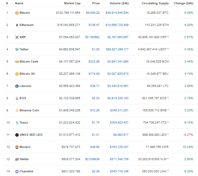 시총 상위코인중에서는 모네로가 상승폭이 큽니다.