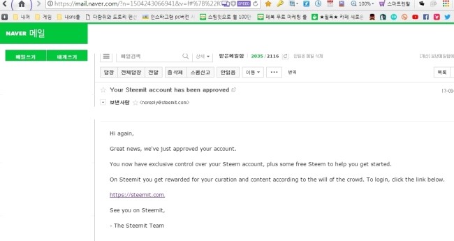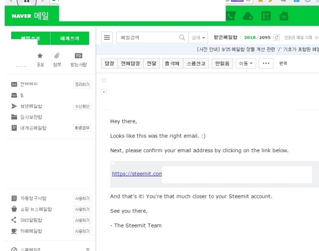 메일 내용이 steemit 으로부터 도착했 을꺼예요 ㅎ