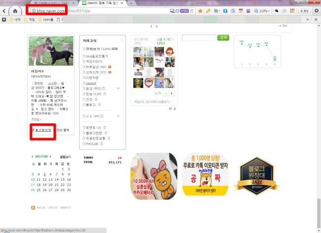 네이버 블로그로 접속하시면