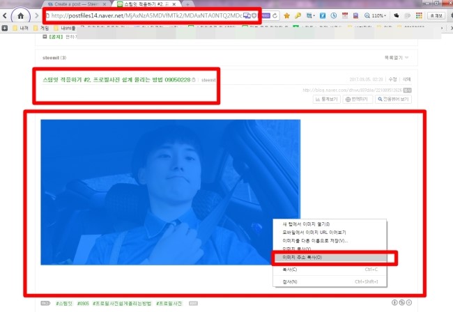 이미지 주소 복사 후 스팀잇에서 활용