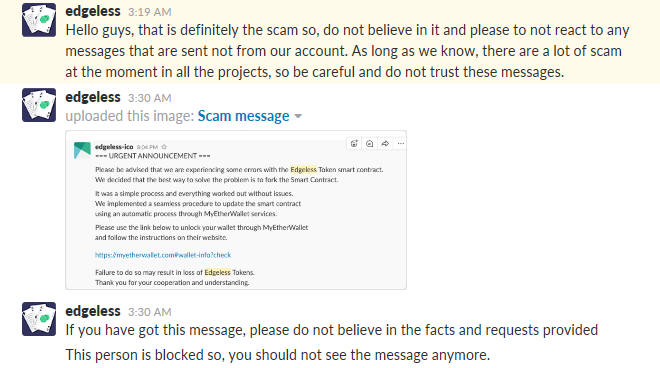 - 또한 위 엣지리스측의 공식적 답변에서도 스캠(the scam)이라고 언급했기에 민감한 반응은 하지 않아도 될 것 같습니다.