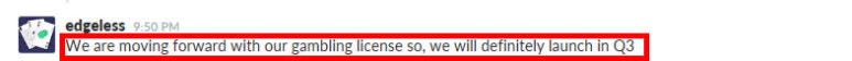 - 우리는 겜블링 라이센스의 취득으로 나아가고 있으며 3분기에는 확실히 시작할 것입니다.