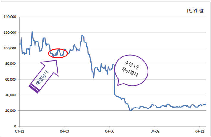 거원이라는 강력한 경쟁자가 국내 시장에 나왔고 2005년 이후 초기에는 ‘이익모멘텀 둔화’라고 표현하던 시장의 평가가 본격적으로 ‘실적하락’으로 바뀌기 시작했다. 물론 중간에 무상증자가 있어서 ‘생각보단 손실률이 크지 않다’라고 마음속으로 안위는 했었지만 투자기간 동안 내내 얼마나 속을 끓이고 내 자신을 한탄 했는지 모른다.