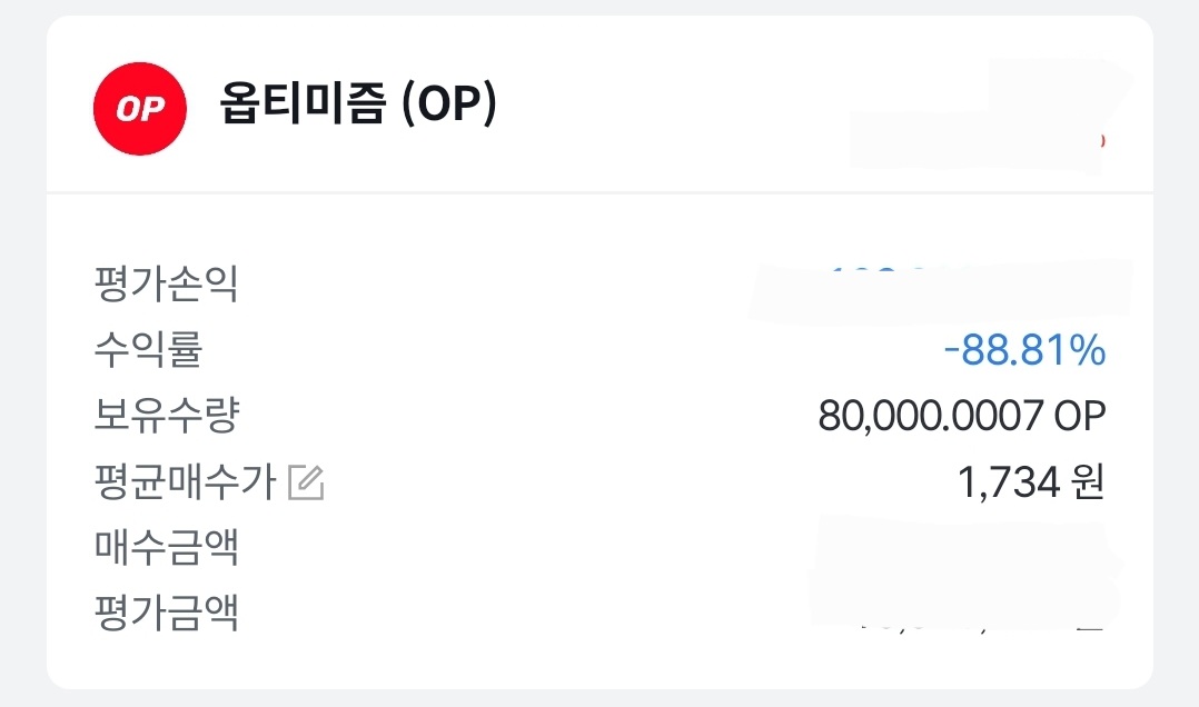 [옵티미즘 돈쭐내기] 2025.10.31. OP 추매, 평단 1,994, 수익률 -69.2%