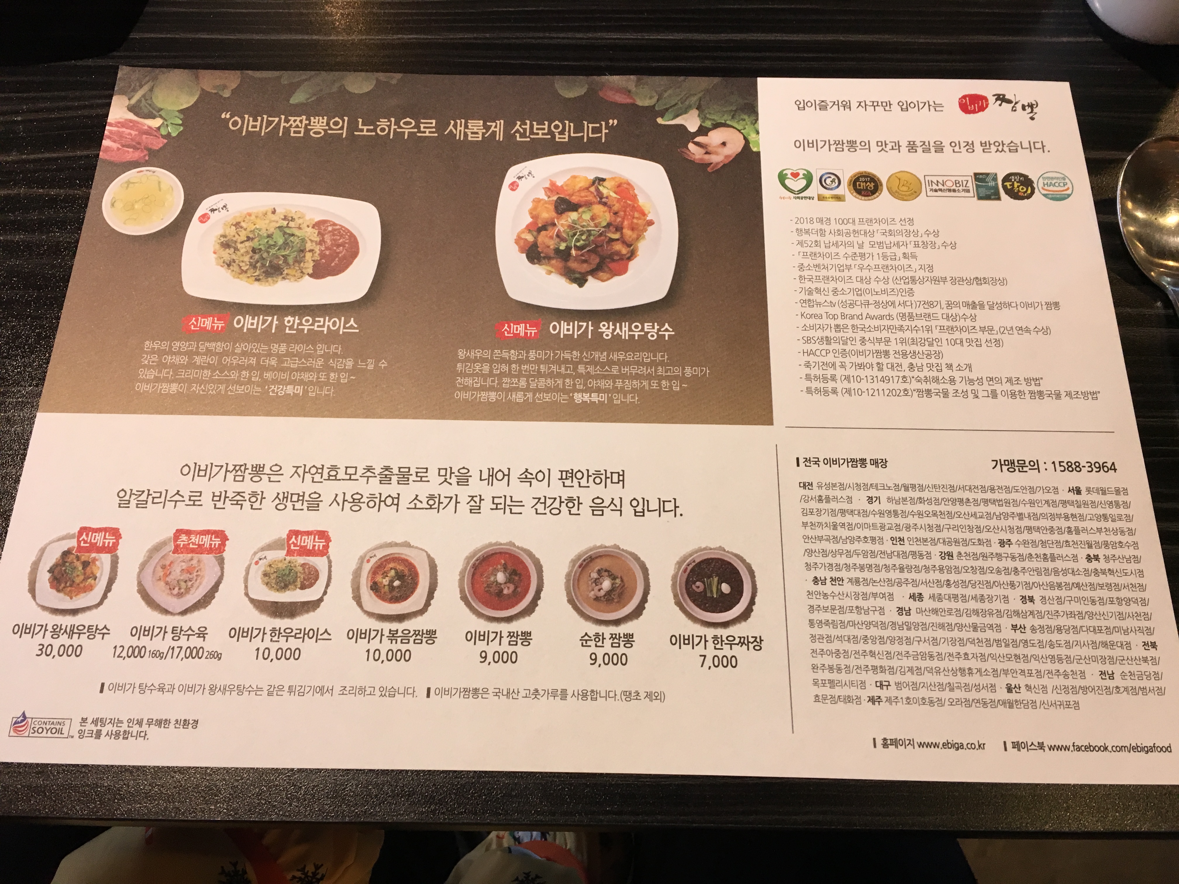 이비가 짬뽕이나 순한 짬뽕, 이비가 한우짜장이 기본 메뉴이고, 가끔씩 신메뉴를 바꿔가면서 선보이는 시스템이다. 가격도 그렇게 부담스럽지는 않은것 같다.