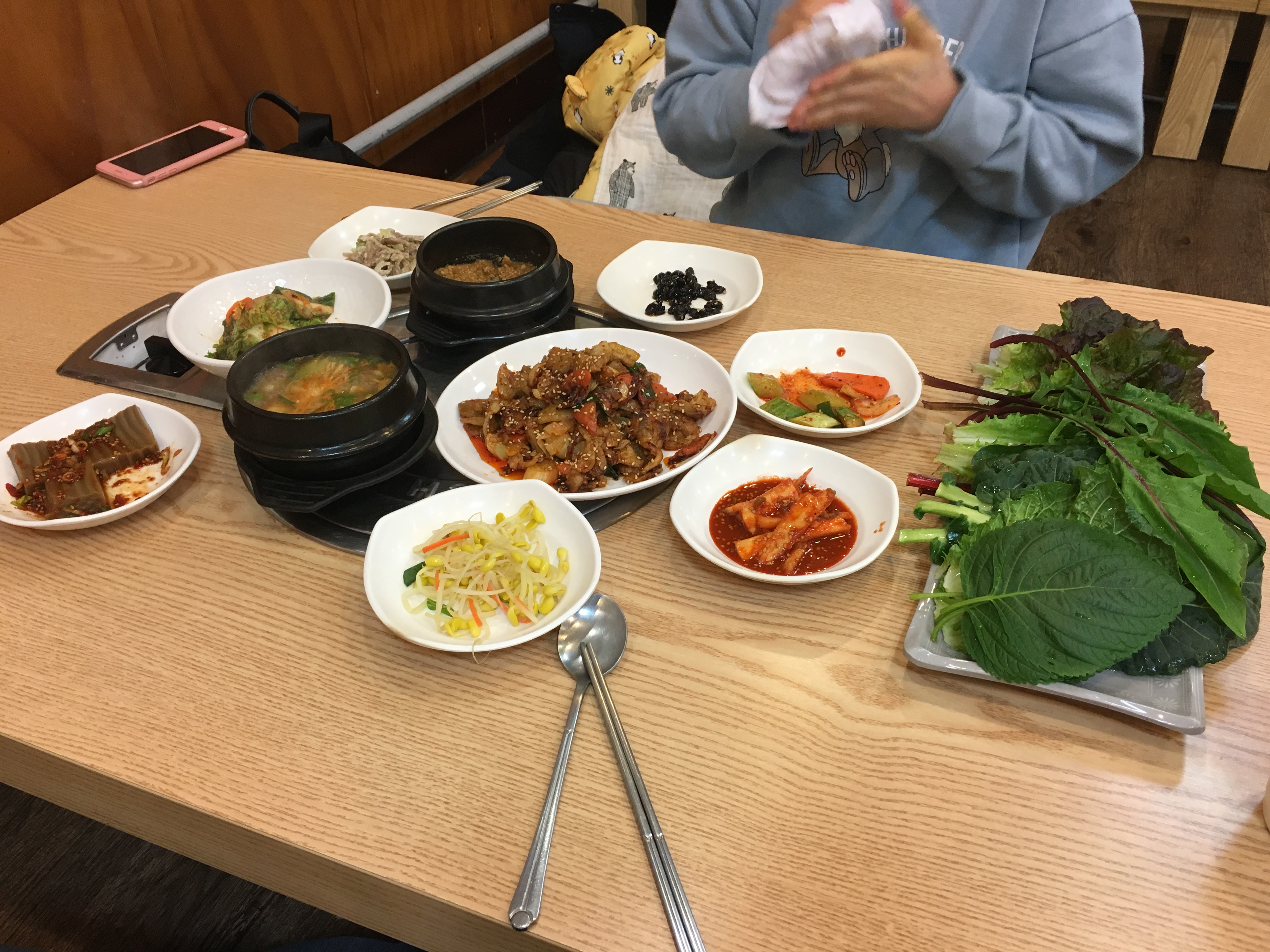 쌈밥을 시키면 된장찌개가 같이 나온다.