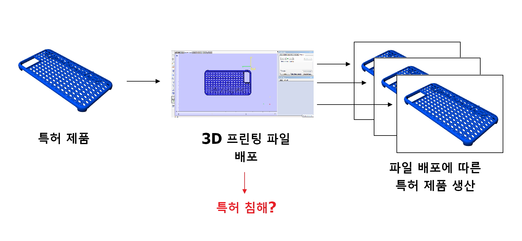 - 예를 들어, 특허 제품인 걸 알면서도 특허 제품의 3D 파일을 타인에게 배포하여 생산하게 하는 행위를 특허 침해로 볼 수 있을 것입니다.
