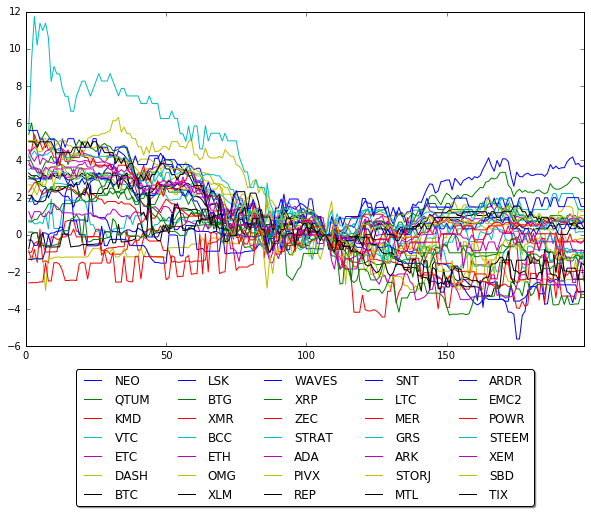 오전 11:00경의 하락을 기준으로 업빗 코인들의 등락율을 확인해봤습니다.