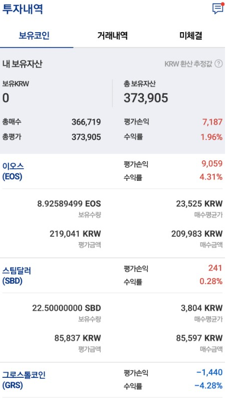애초에 나눠 넣기에도 너무 적은 돈이긴 하지만 본인 기준 괜찮아 보이는 것들로 여기저기 나누어 넣어둬 봅니다. 일단은 최근 날아가고 있는 이오스를 중점으로.. 한번 넣어보았습니다.