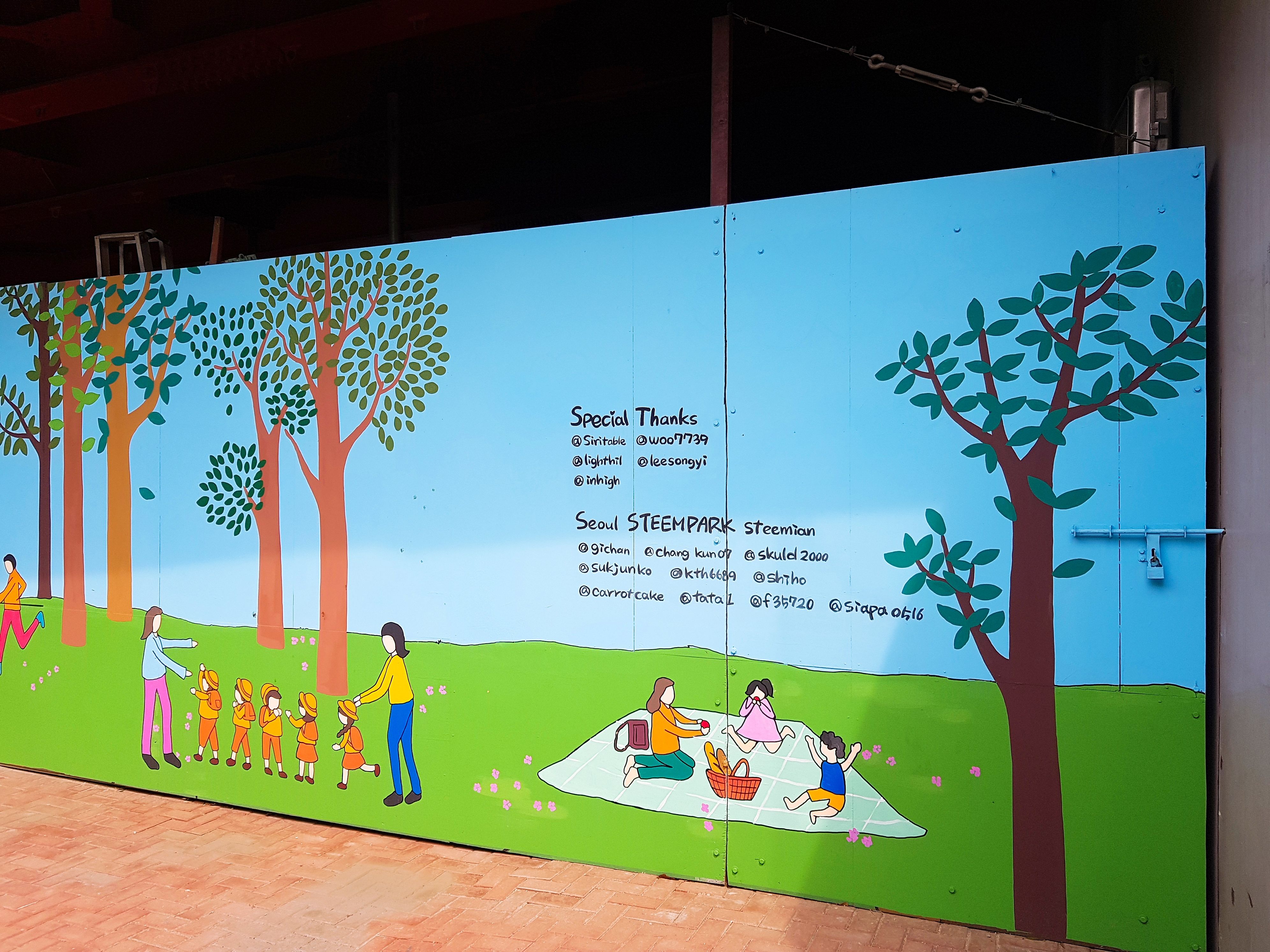 저 때문에 스팀잇을 조금(?) 알고있는 친구와 함께 서울숲에 갔었는데 스팀파크를 보고 굉장히 신기해 하더군요. 이런게 다 있냐면서 ㅎㅎ. 아마 인터넷 커뮤니티가 이렇게 실제에 영향력을 행사하는 것이 신기했나봅니다. 구경만 하고 따로 즐길 수 있는 거리들은 없어 오래 머물지는 않았지만 마치 성지순례를 다녀온 듯 해 기분이 좋았습니다.