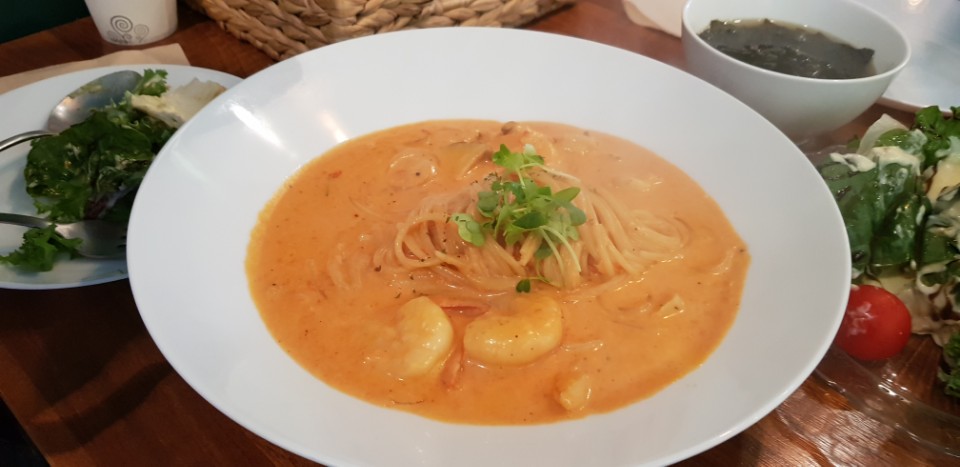 날씨가 흐려서 멀리 가지않고 같은 건물에 있는 파스타집에 점심을 먹으러 갔었다. 외관상 식당이름 보고 들어가야할지 말아야할지 잠시 고민했지만 점심시간만 되면 이집은 줄을 선다고한다. ㅋㅋㅋ