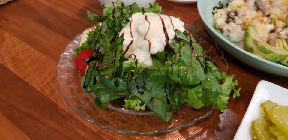 내가 시켜 먹었던 '크림쉬림프스파게티', 그리고 함께 공방수업받는 언니가 먹은 '로제파스타', 그리고 다이어트 하시는 선생님께서는 '아보카도명란밥'을 드셨다. 맛있는 샐러드는 테이블마다 나오는 음식~!!!!!