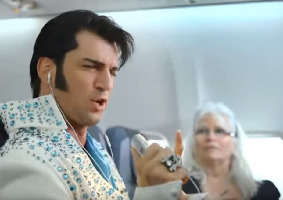 이륙중에 이어폰을 사용하는 엘비스 프레슬리