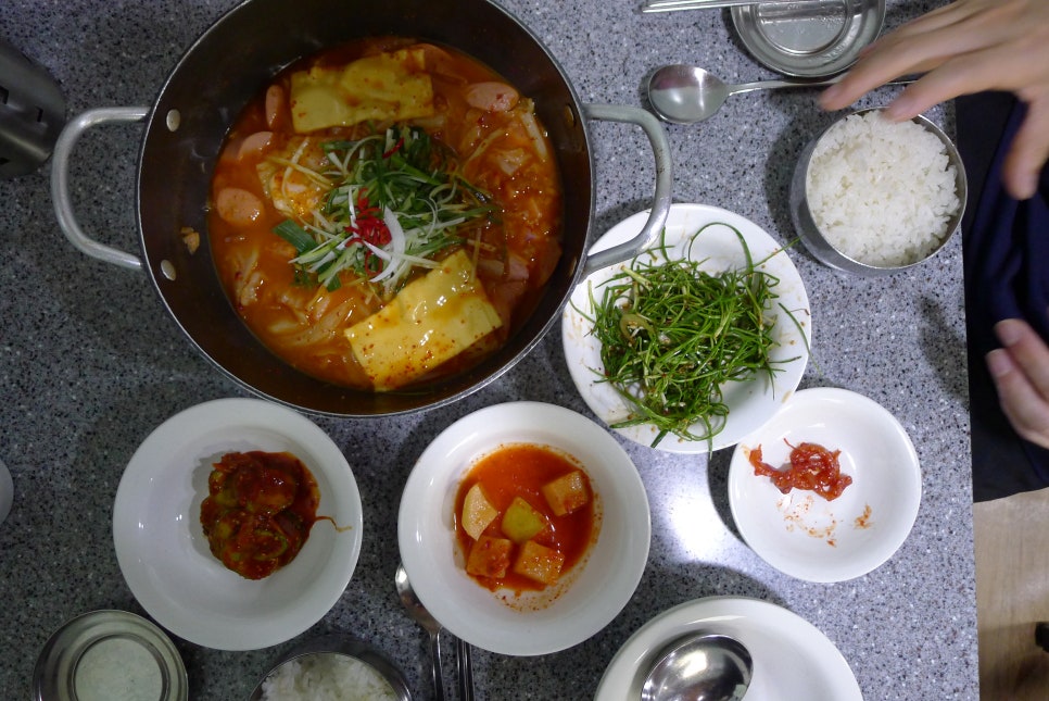 아는 사람은 다 아는 이태원 존슨탕. 처음엔 이름이 뭐 이래? 하겠지만, 먹고 나면 아 '존슨탕'이구나 하게된다. 일반적으로 접할 수 있는 부대찌게랑은 확실히 다른 맛이다. 일단 비주얼부터 다른데, 푸짐해 보이지 않고 빈한 느낌, 치즈라면인가 싶은 비주얼이다. [다른데는 소세지와 떡사리 라면이 푸짐하게 들어가있는데 말이다!] 치즈를 저어서 녹이지 않고, 모양 그대로 한국자 푹 떠서 담는다. 파를 한 올 올려서 한입 떠먹는다. 적당히 따땃한게 달짝지근하다. 치즈때문에 고소한 맛이 올라온다. 맛있다. 밥과 함께 바닥까지 싹싹 긁어먹는다. 다른 부대찌게보다 빈한게 아니라 이건 그냥 존슨탕이었던 것이다. 양배추가 많이 들어가서 달짝지근한 맛을 내는데, 얼큰한 부대찌게 맛을 기대한 사람들에게는 다소 실망스러울지도 모르겠다. 하지만, 여자와 어린 아이, 외국인 취향저격에는 실패하지 않을 것 같다. 부대찌게라고 생각하지 않고 아예 다른 음식이라고 생각하는 편이 나을 것 같다. 어쨋든, 난 중독적인 존슨탕이 맛있고 좋다.