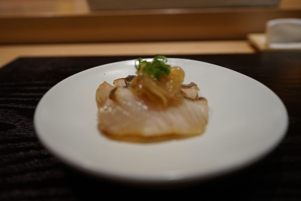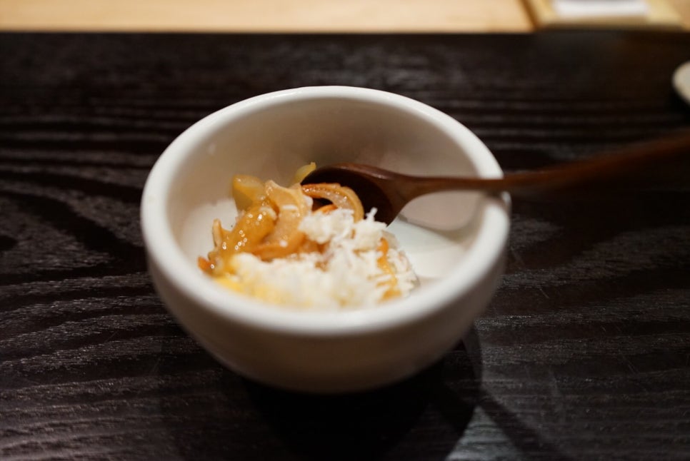 우리는 토요일 점심시간에 방문했는데, 갑자기 날이 풀린 덕분인지 카운터에 우리 둘뿐이었다. 야마자키 18년 반병 남은걸 가져와서 김정기 셰프와 오손도손 한잔씩 걸치면서 오롯이 우리만을 위한 서빙을 받았다. [날씨에게 참 고마울 따름]