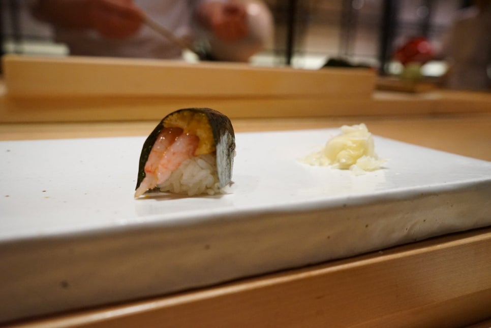 Shrimp & sea urchin roe 단새우 성게알(아마에비 우니)