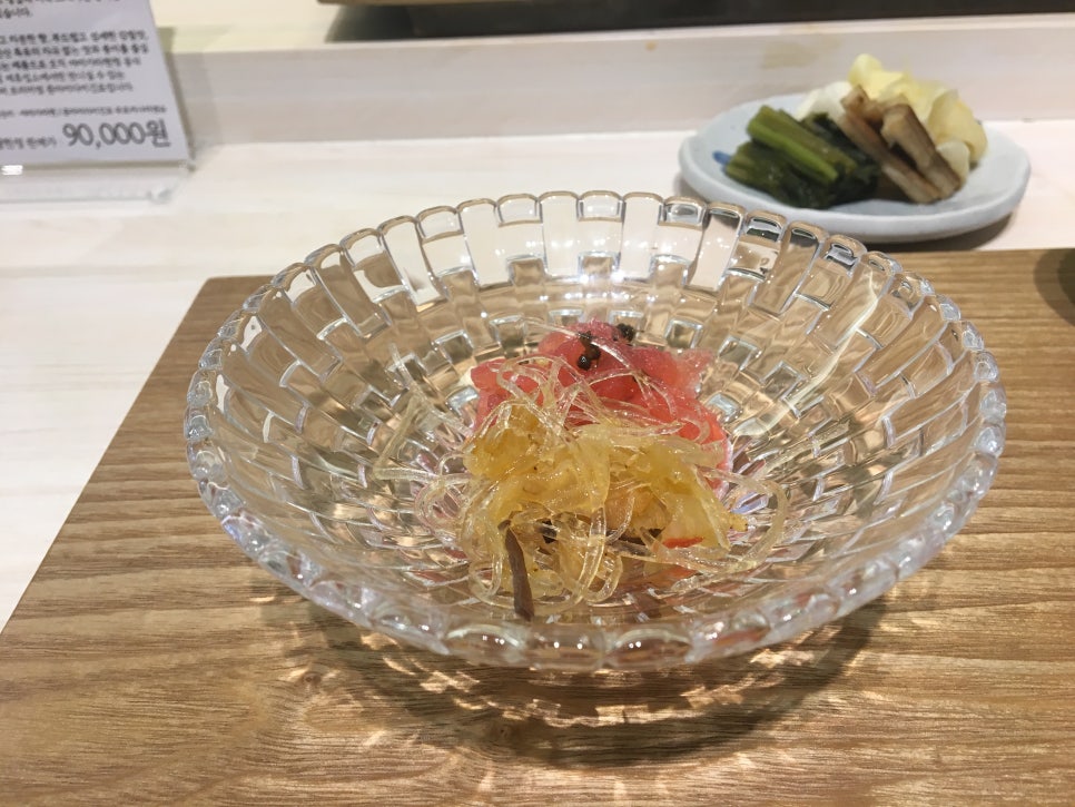 All pieces were absolutely satisfying. Some of them were quite rare to find normally so I was surprised when I saw them in from, for example, a flat bass sushi, lobster shrimps and monkfish liver. What I paid for this lunch is not cheap but the foods definitely worth the price. So, if you want to enjoy proper sushi omakase for lunch near Gangnam area, you should visit here! Do not forget to make a reservation beforehand.