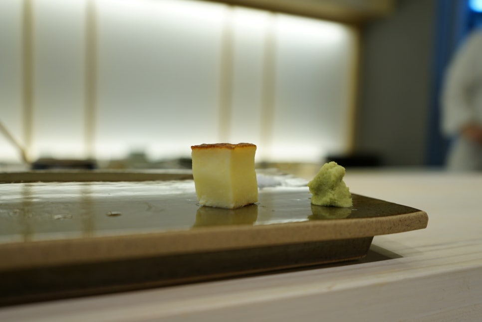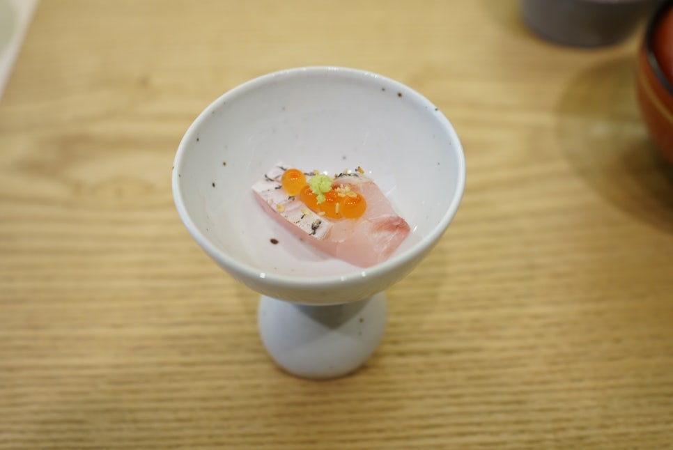 Croaker belly & salmon roe 민어 뱃살, 연어알 (니베, 이꾸라)
