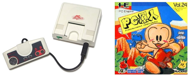 (PC엔진과 대표작 PC 원인. 얇은 휴카드를 활용한다는 점이 독특하다)