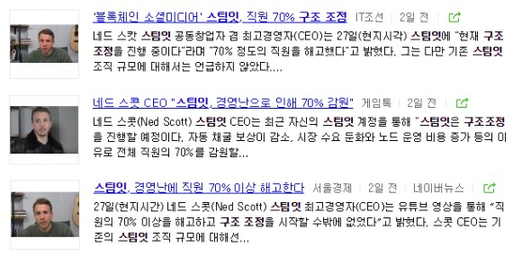 오로지 스팀의 가격상승에만 기대어 비즈니스를 운영해보려 했던 것 같습니다. 대세상승기에는 이런 접근이 통했지만 근 1년간에 걸친 하락기를 맞이하기엔 역부족이었습니다. 그래서 얼마전 스팀잇이 70% 이상의 인력을 해고하고 강력한 구조조정에 들어갔다는 뉴스가 전해졌습니다.