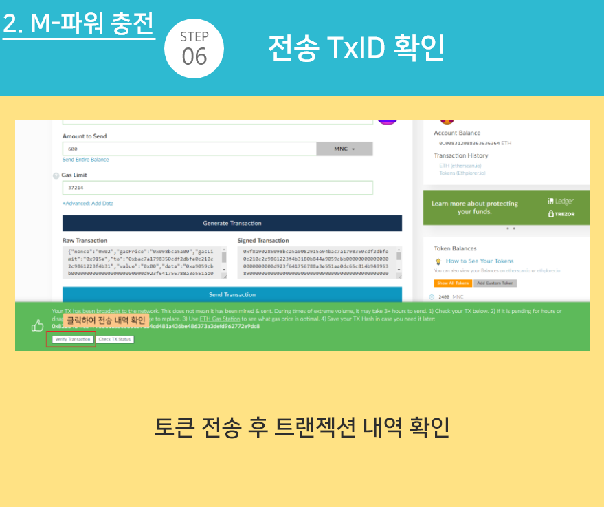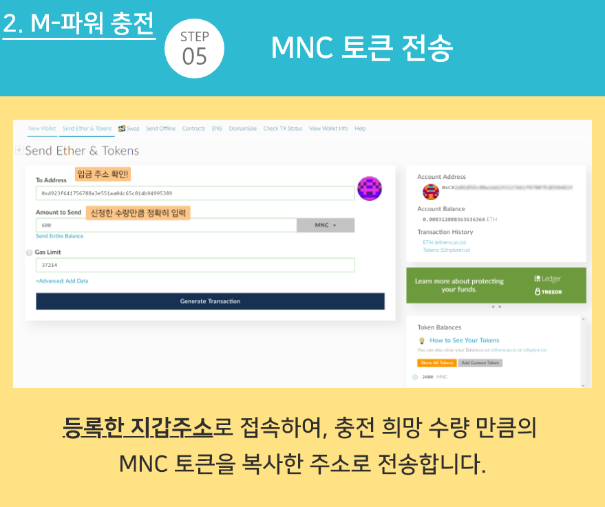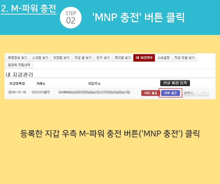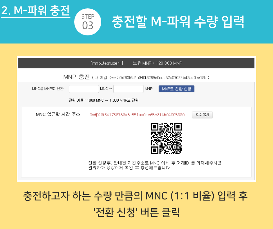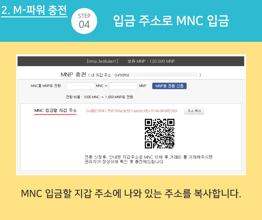 ※ 1단계에서 본인이 등록한 주소로 MNC를 전송해야 충전이 완료됩니다.