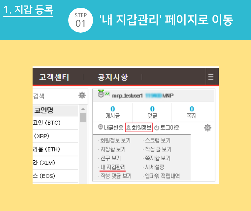 STEP 01 - '내 지갑관리' 페이지로 이동합니다