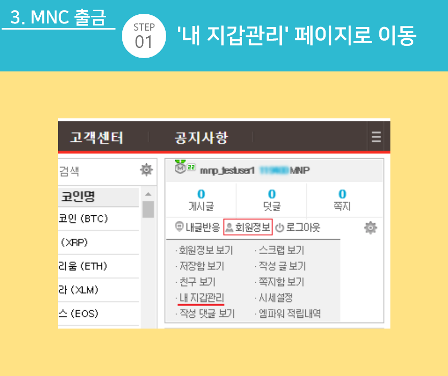 ※ MNC 출금은 실명인증된 회원만 가능합니다.