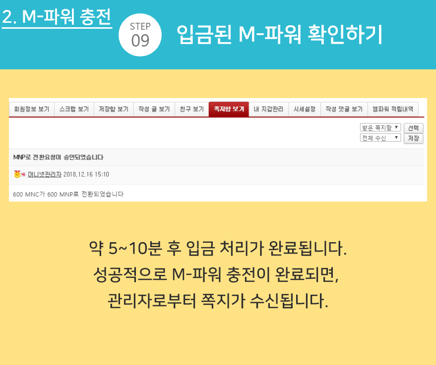 STEP 09 - M-파워 충전 내역을 확인합니다.