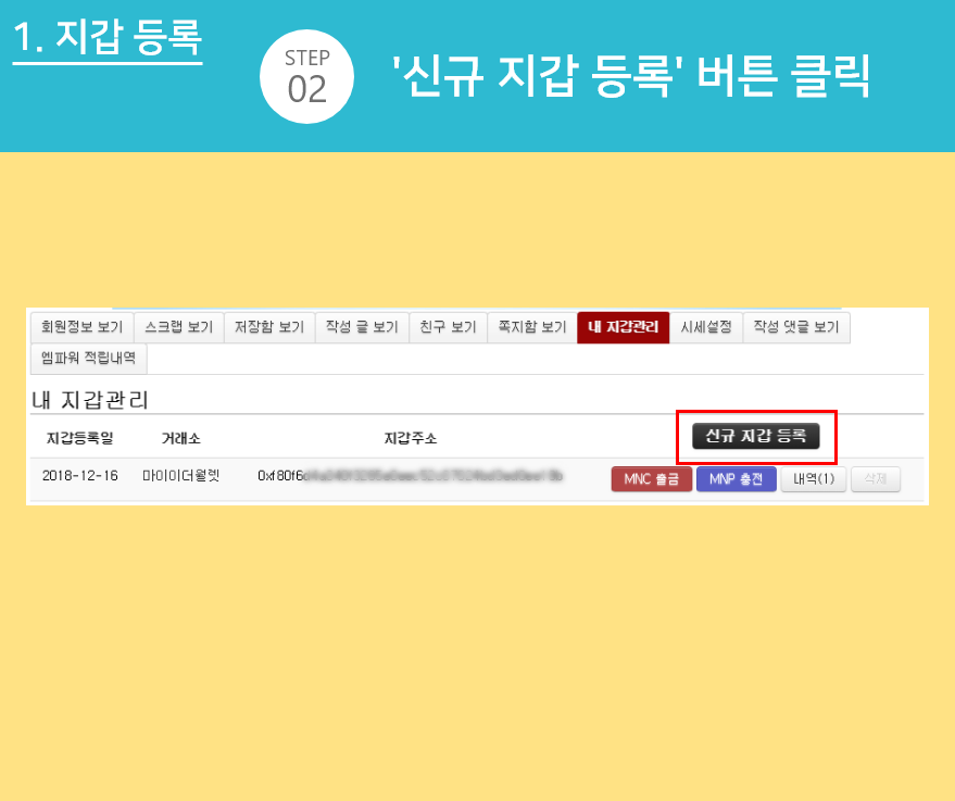 STEP 02 - '신규 지갑 등록' 버튼 클릭