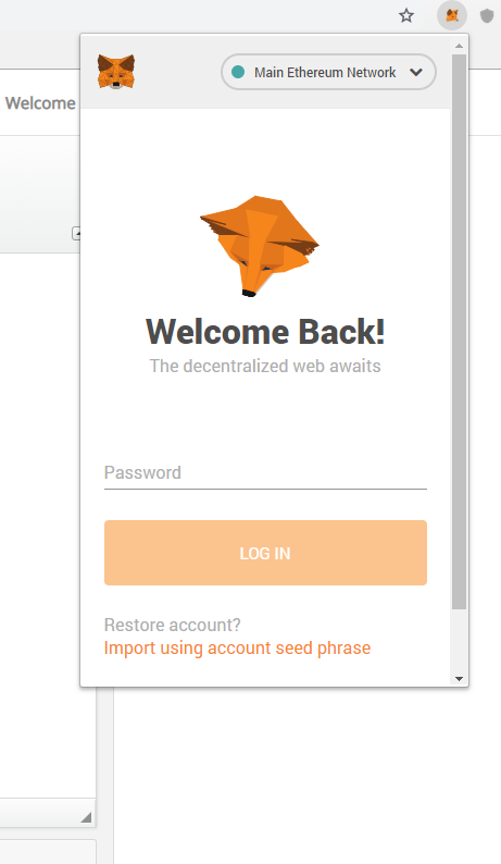 5. 메타마스크 플러그인을 열어 로그인합니다.