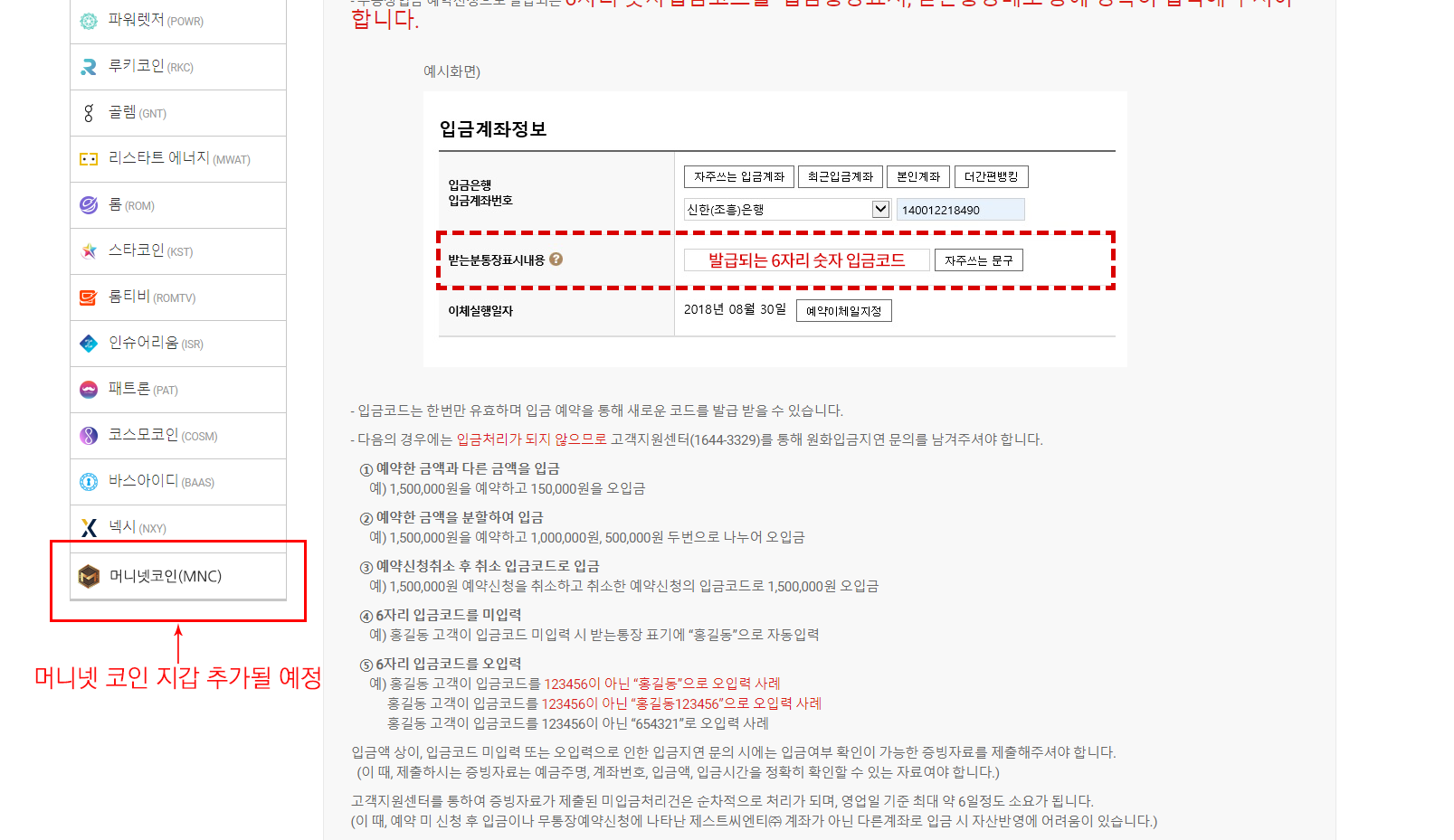 ICO에 참여하신 분들 중 머니넷코인(MNC)를 거래소로 이동하고자 하시는 분들을 위해