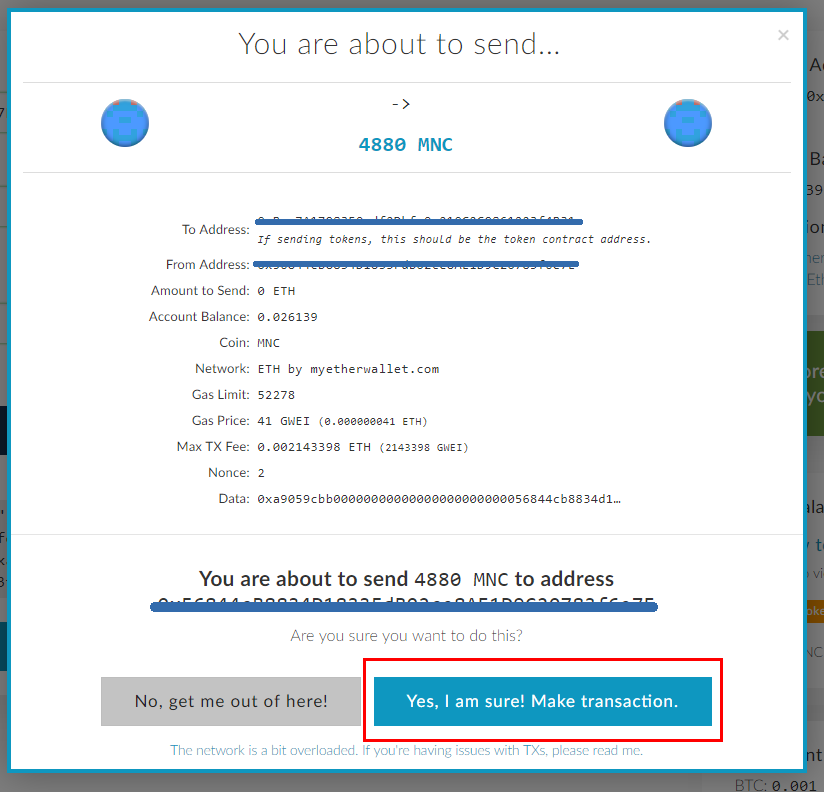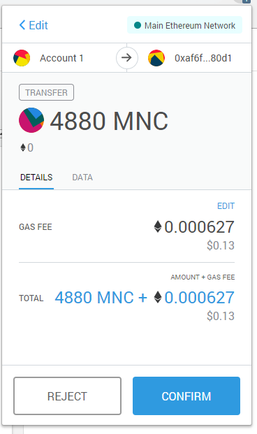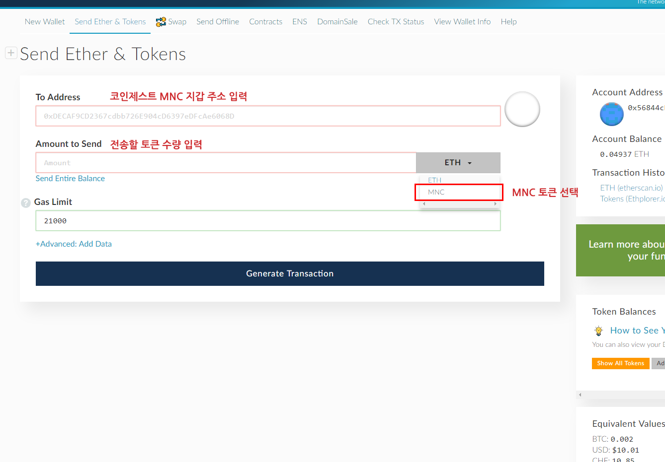 B. 마이이더월렛(MyEtherWallet)에서 MNC 토큰 거래소로 전송하는 법