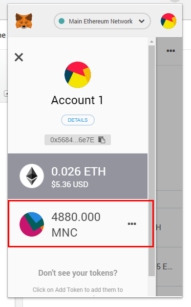 7. 메타마스크의 머니넷코인(MNC) 토큰 지갑을 선택합니다.