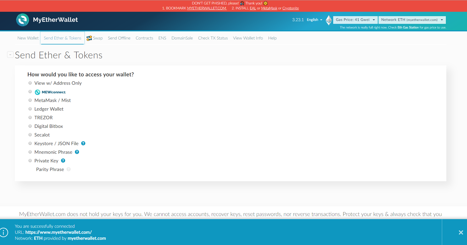 5. 마이이더월렛 사이트(https://myetherwallet.com/)에 접속하여 'Send Ether & Tokens' 메뉴를 클릭합니다.