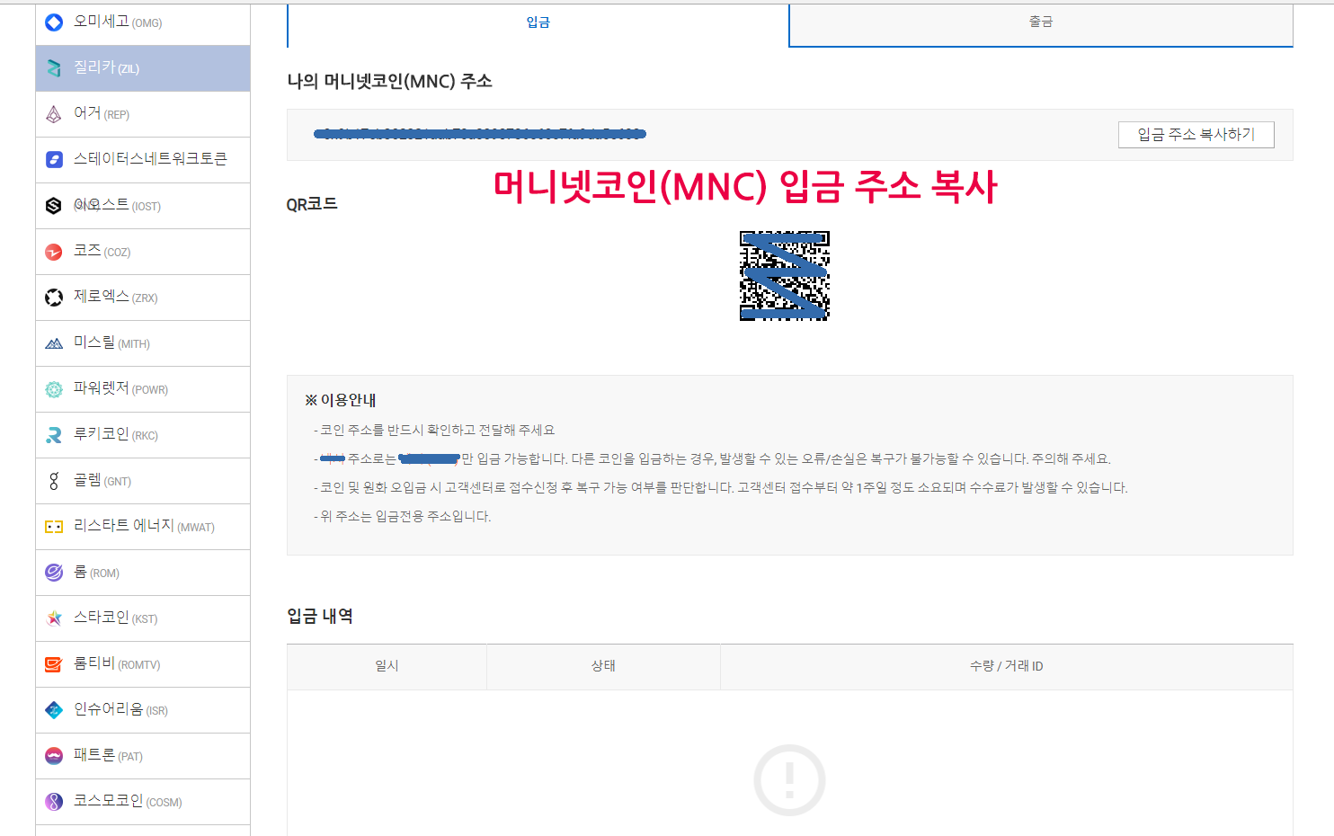 머니넷코인(MNC) 코인제스트 거래소 지갑으로 전송하는 방법!