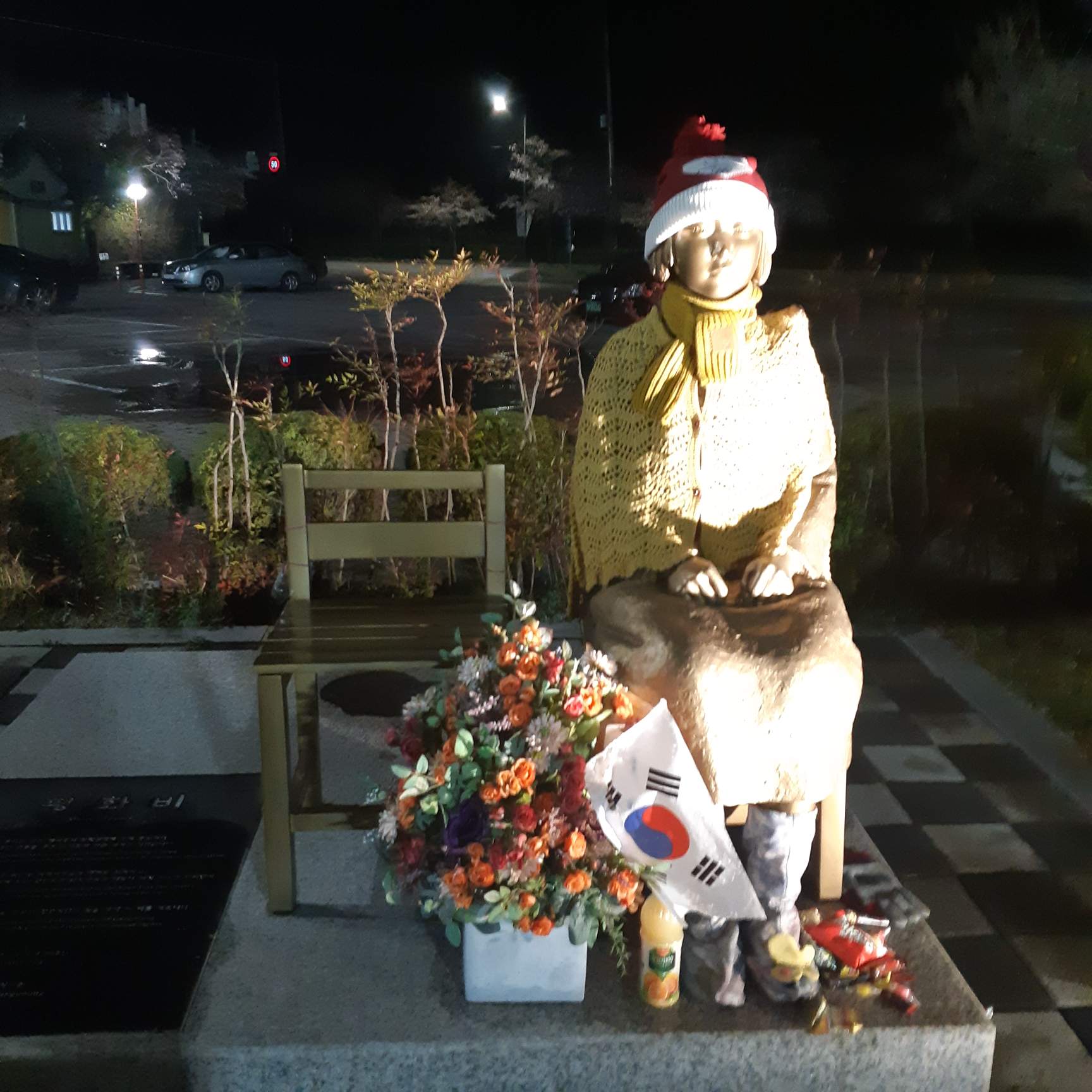 경포호수의 벚꽃을 보러갔다가 소녀상을 보게 되었다.