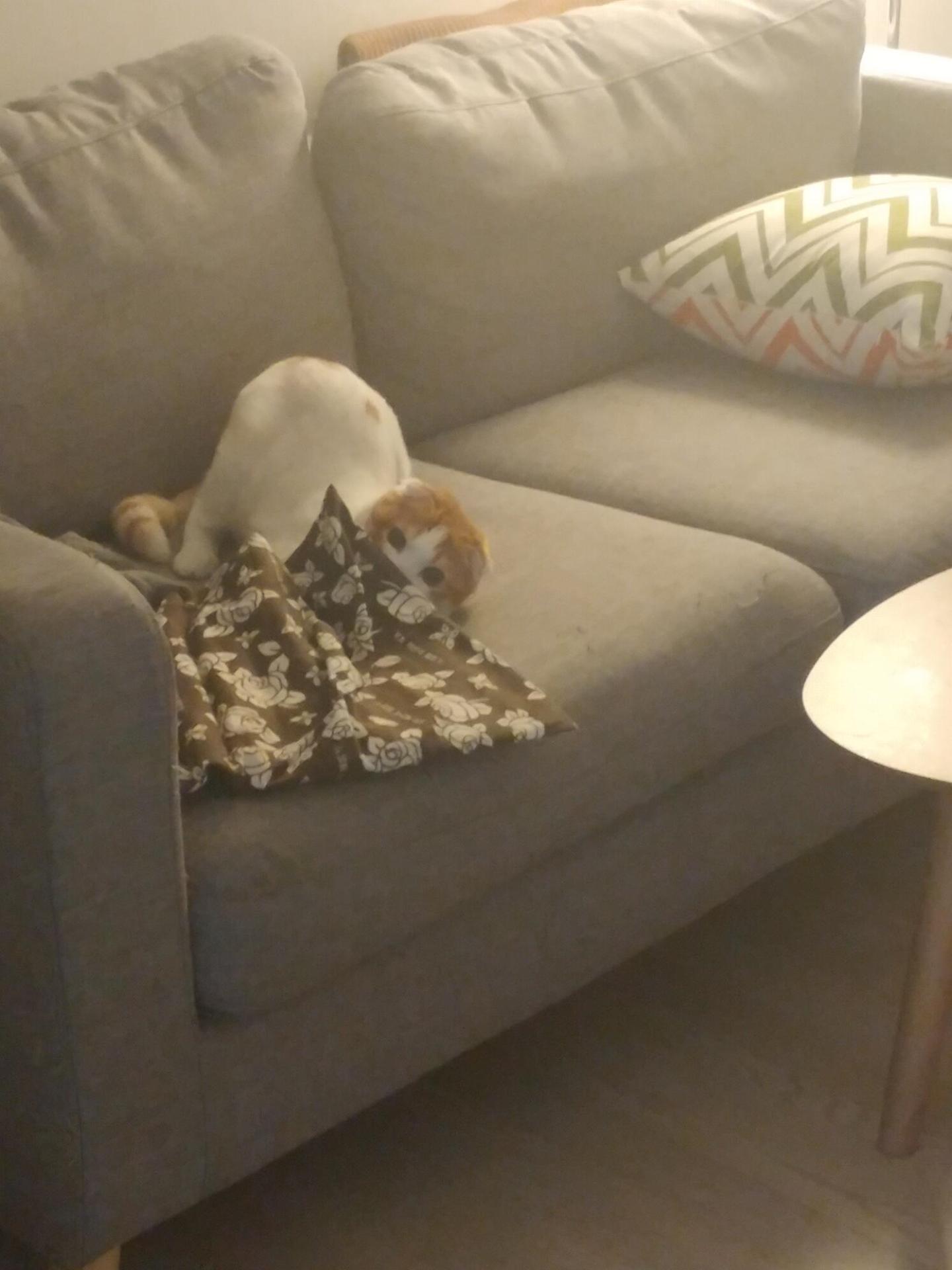 오늘도 너무 놀라 캣타워로 도망쳤다..