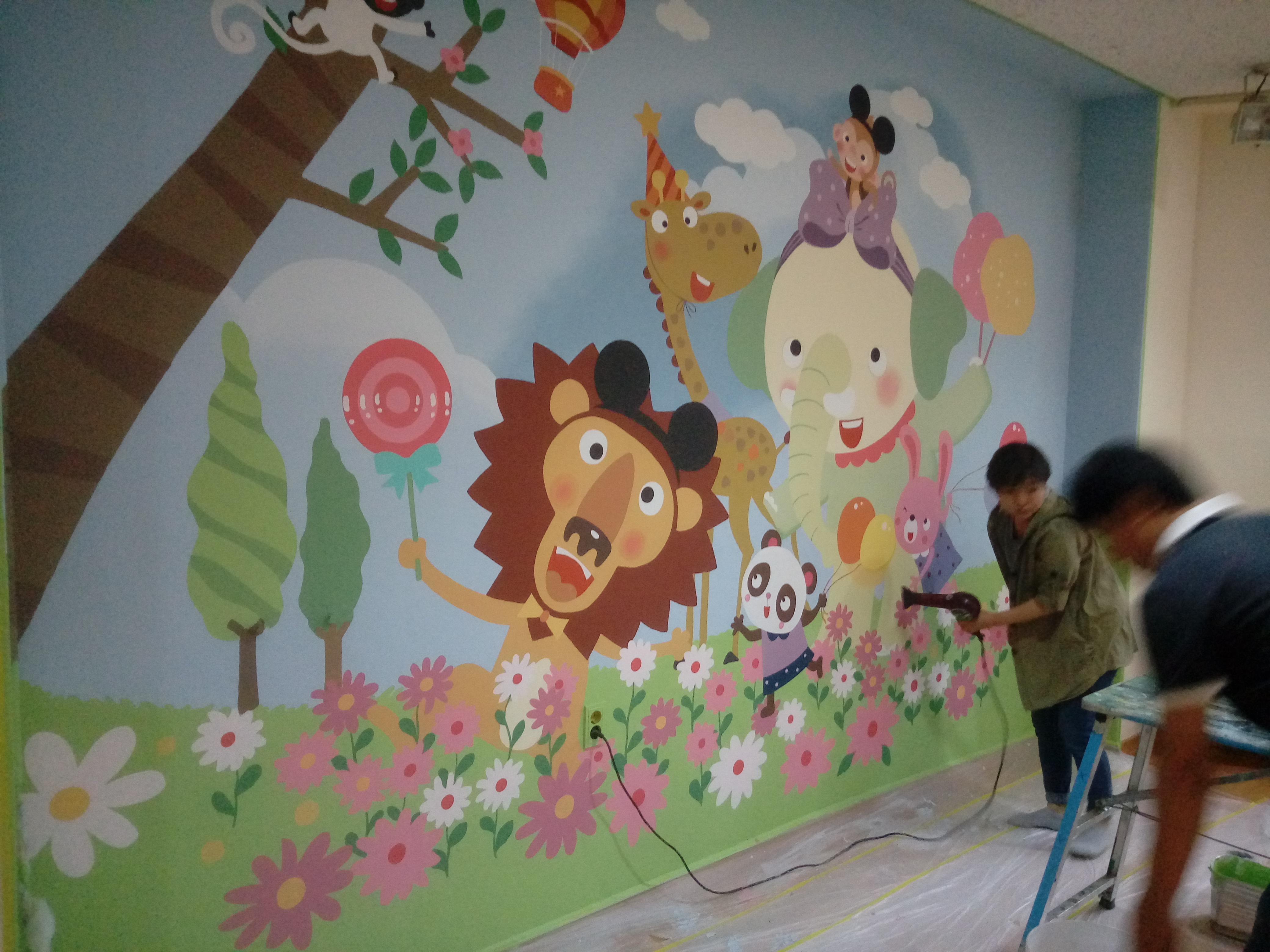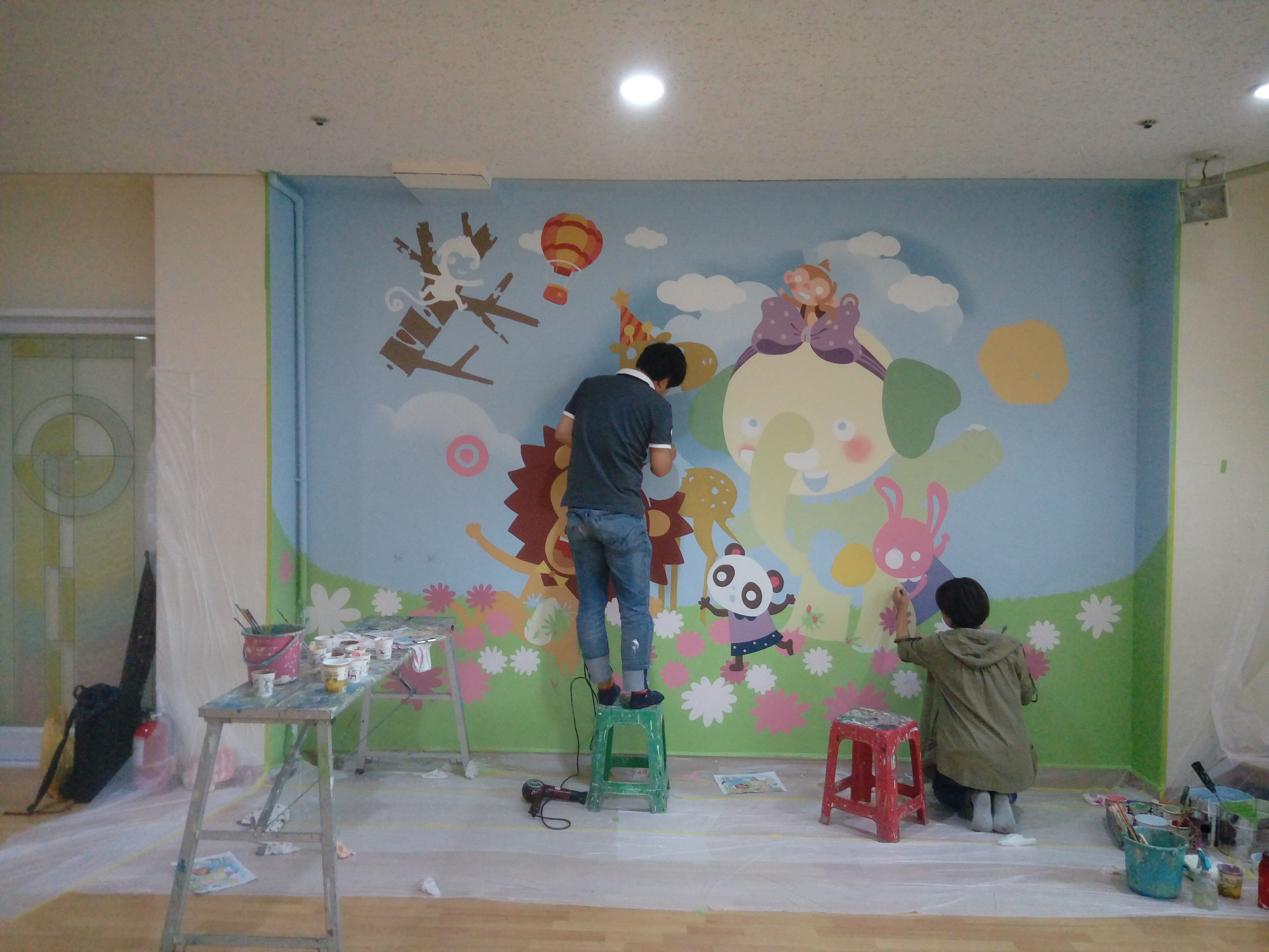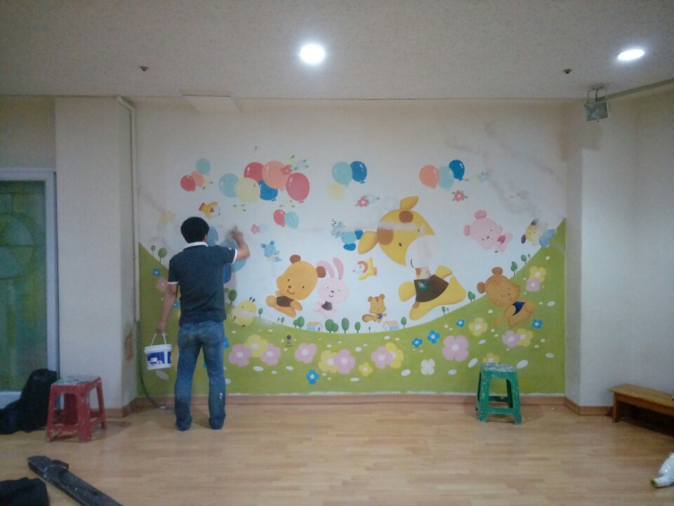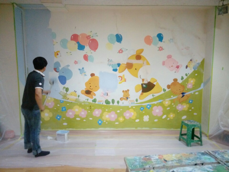 ps. 회화적 벽화가 아닌 일러스트 느낌의 벽화라서 손이 정말 많이 갔습니다. 제가 손이 좀더 빨랐으면 하는 아쉬움이 많았어요. 오전 일찍 시작해서 6시 넘어서야 작업이 끝났습니다. 그래도 오늘 완성해서 대행입니다. 다음엔 붓을 좀더 빨리 움직일 수 있도록 연구를 해야 할것 같아요.