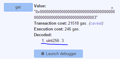 이제 저장된 값을 바꿔봅시다. 빈칸에 숫자 3(또는 2^256을 넘지 않는 다른 숫자)를 넣고 set 버튼을 클릭합시다.